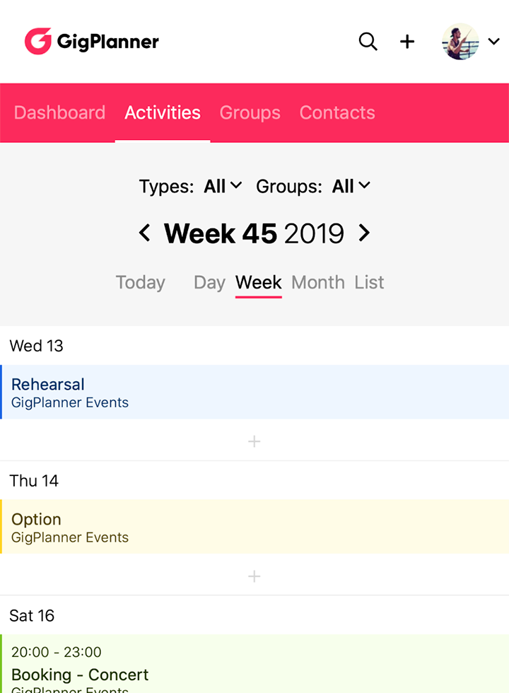 Are you a DJ or a sound engineer? Do you dance or perform onstage as an actor? Do you sing in a choir or play in an orchestra? Everyone who deals with rehearsals and bookings knows the challenges that come with managing multiple agendas. Try GigPlanner for free and discover how much time you’ll save with our convenient platform.
